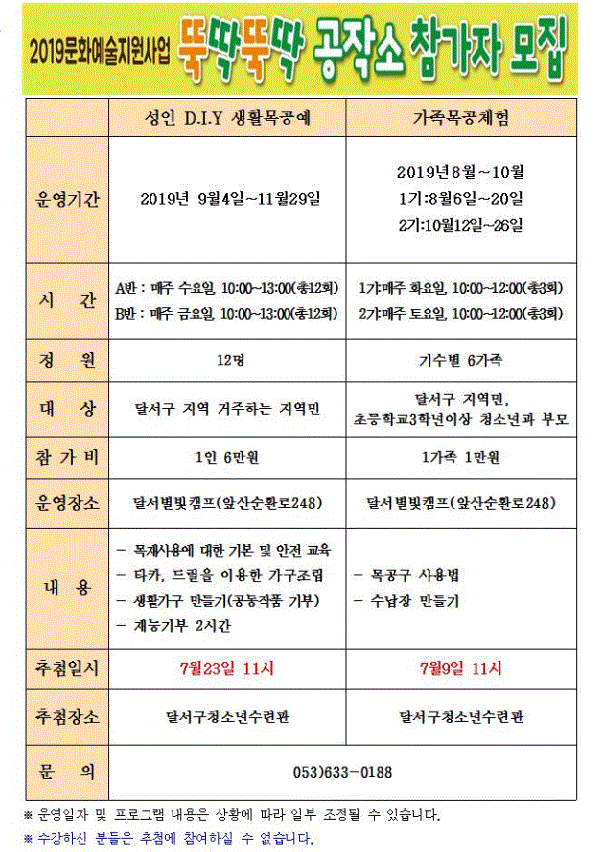 2019년 뚝딱뚝딱공작소 참가자 모집(하반기)